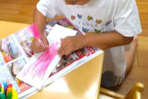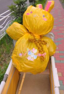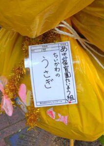 かかしコンクールにエントリー 2025/09/25 今年もあゆみ保育園のお米が実ったので、4.5歳児がかかしを制作しました。昨年から稲作と共に始めたかかし制作。今年も清澄白河収穫祭『かかしコンクール』にエントリーしました。11月3日(月)まで沢山のかかしが資料館通りに設置されています。子ども達と散歩に行って、あゆみ保育園のかかしを探しながら色々なかかしを見るのが楽しみです♪ 今年もあゆみ保育園のお米が実りました 大きいのでさんぽ車で運びました。 エントリーシート 耳はピンク♪ みんなで広告紙を丸めて沢山詰めました。