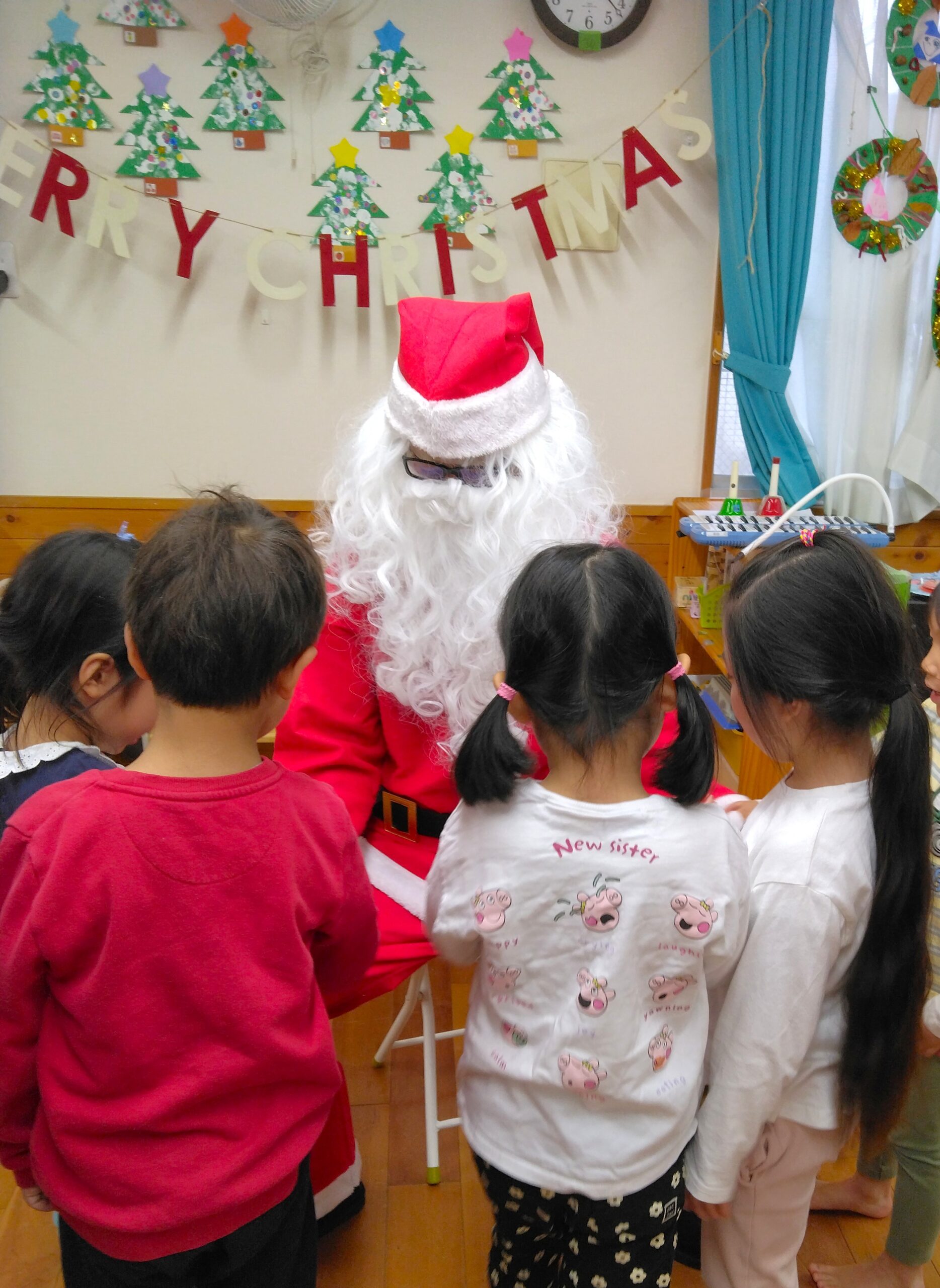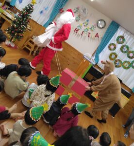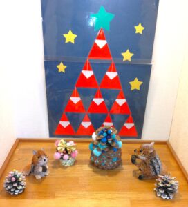 来週はクリスマス会や外部演奏者によるクリスマスコンサートが有ります。保育園内もクリスマスの雰囲気になってきました。各クラスで子ども達が素敵なクリスマス制作をしたのでご紹介します(^^♪
