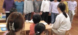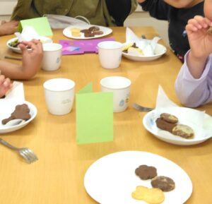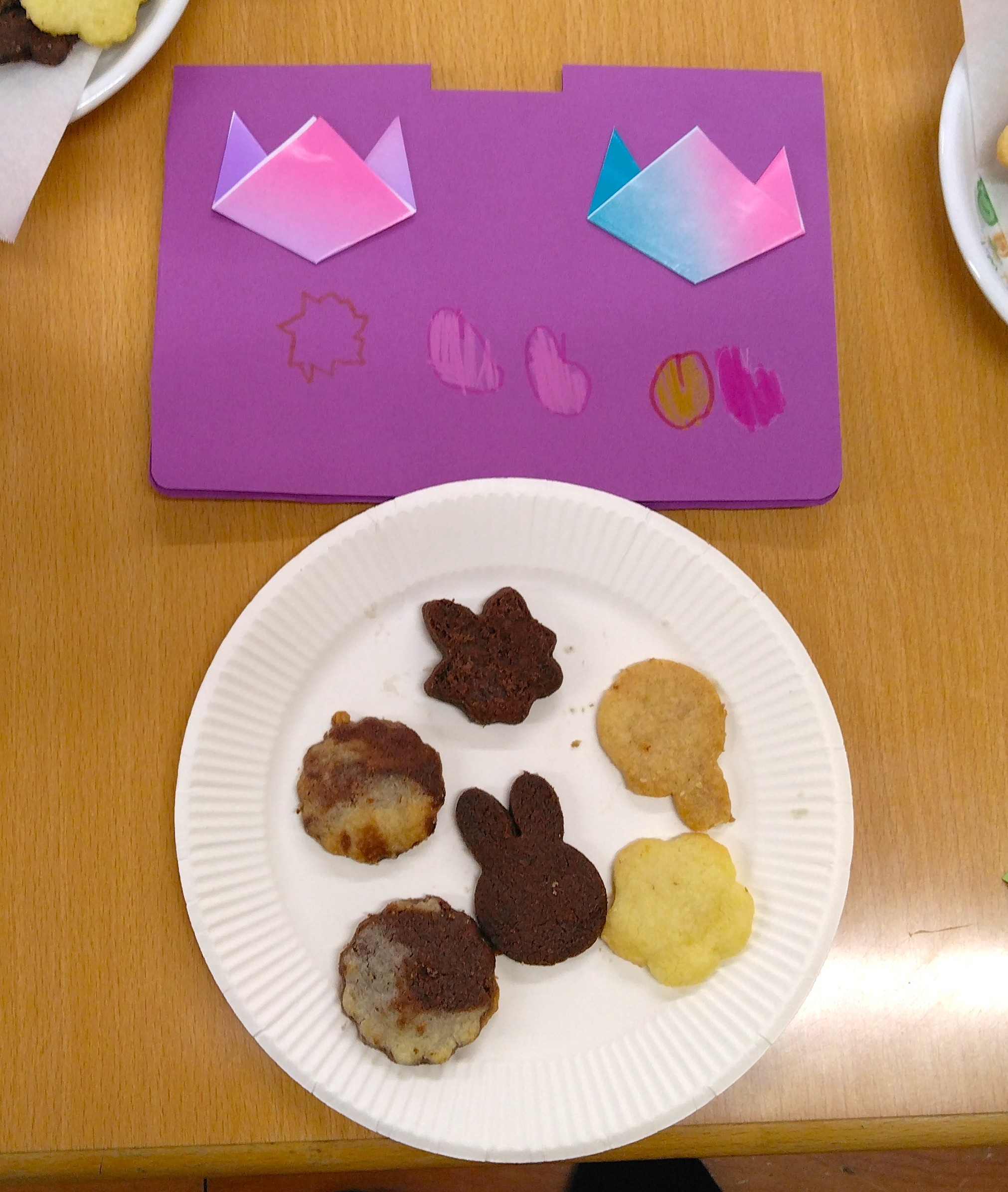 年長さんがクッキーを焼いてお別れパーティーを開催。職員を招待してくれました。招待状も素敵な手作りで中には平仮名でしっかりとした文字で内容が書いてありました。クッキーはプレーンとココア味でおいしかったですよ(^^♪