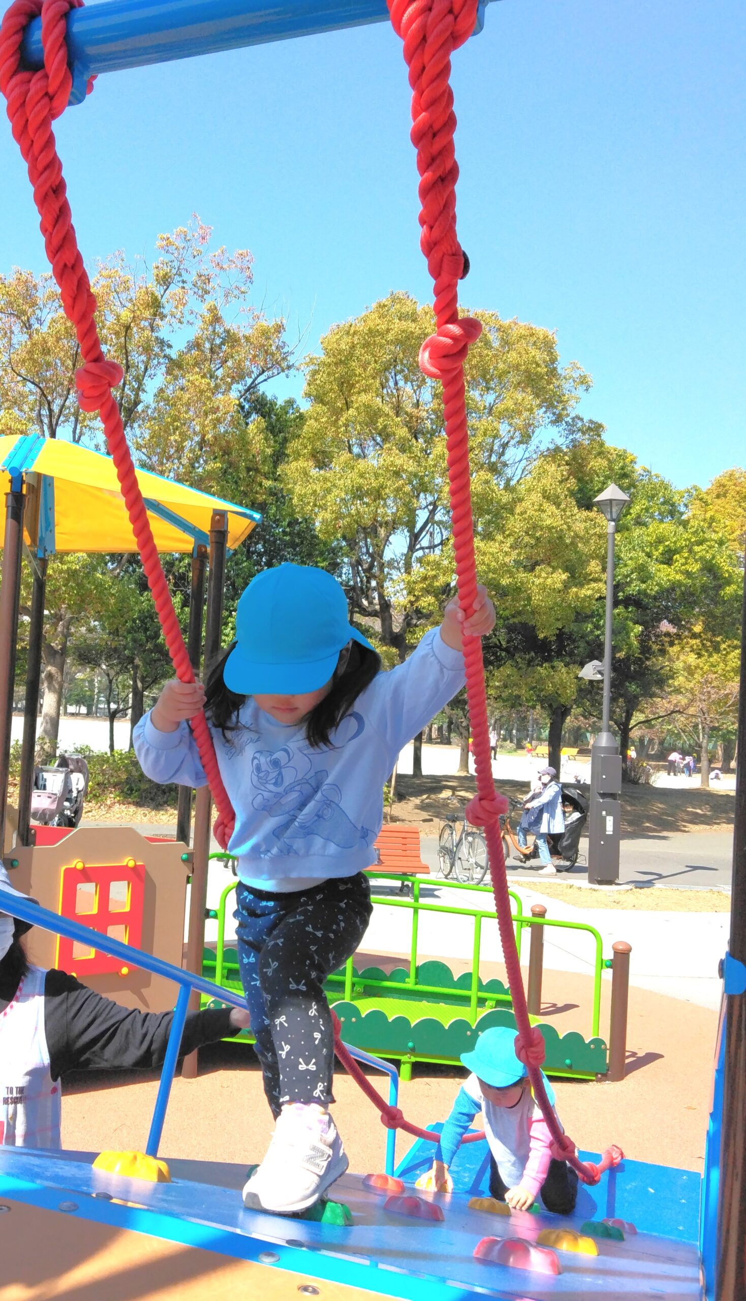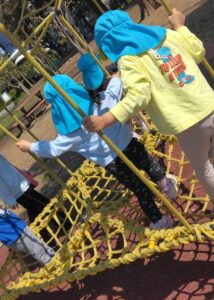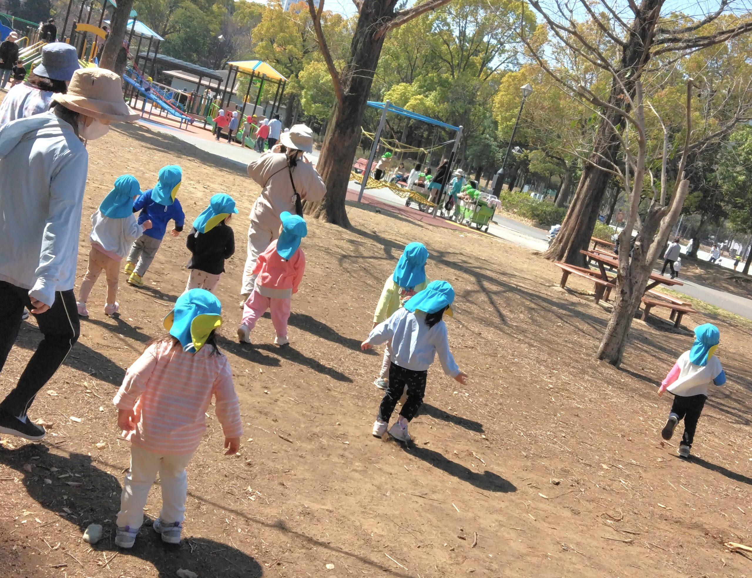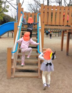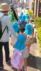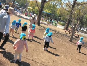 ぽかぽか陽気の中、お弁当が入ったリュックを背負って初めて遠足に行ってきました。「おもい~!」とニコニコ顔でリュックの重みを感じながら、片道30分弱の道のりをしっかり歩いて行って来ました。早朝からお弁当を作ってくださった保護者の皆さんに感謝💛よく遊び、しっかりお弁当を食べ、食後もひと遊びしてから再び30分弱歩いて帰ってきました。帰りは、やけにテンションが高い子や疲れて足取りが重い子がいましたよ。おつかれさま~(^^♪